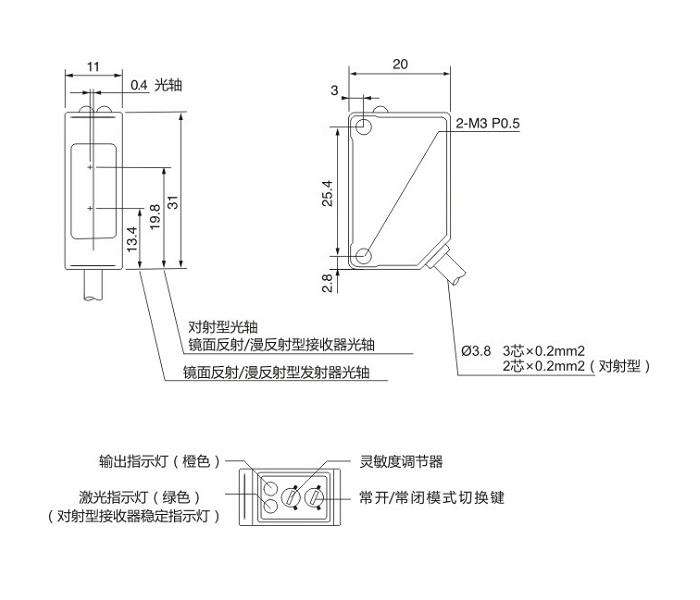 | 检测方式 | 漫反射-背杲抑制 |